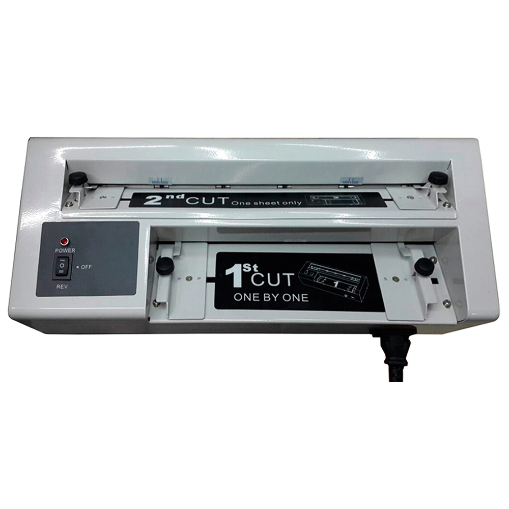 - Высококачественные дисковые ножи в два прохода быстро и аккуратно разрезают листы формата А4