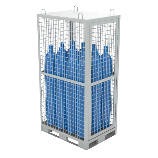Предназначена для хранения и перевозки баллонов с кислородом. Конструкция включает одно отделение с дверцей, которая запирается на задвижку. Поставляется в готовом к использованию виде.