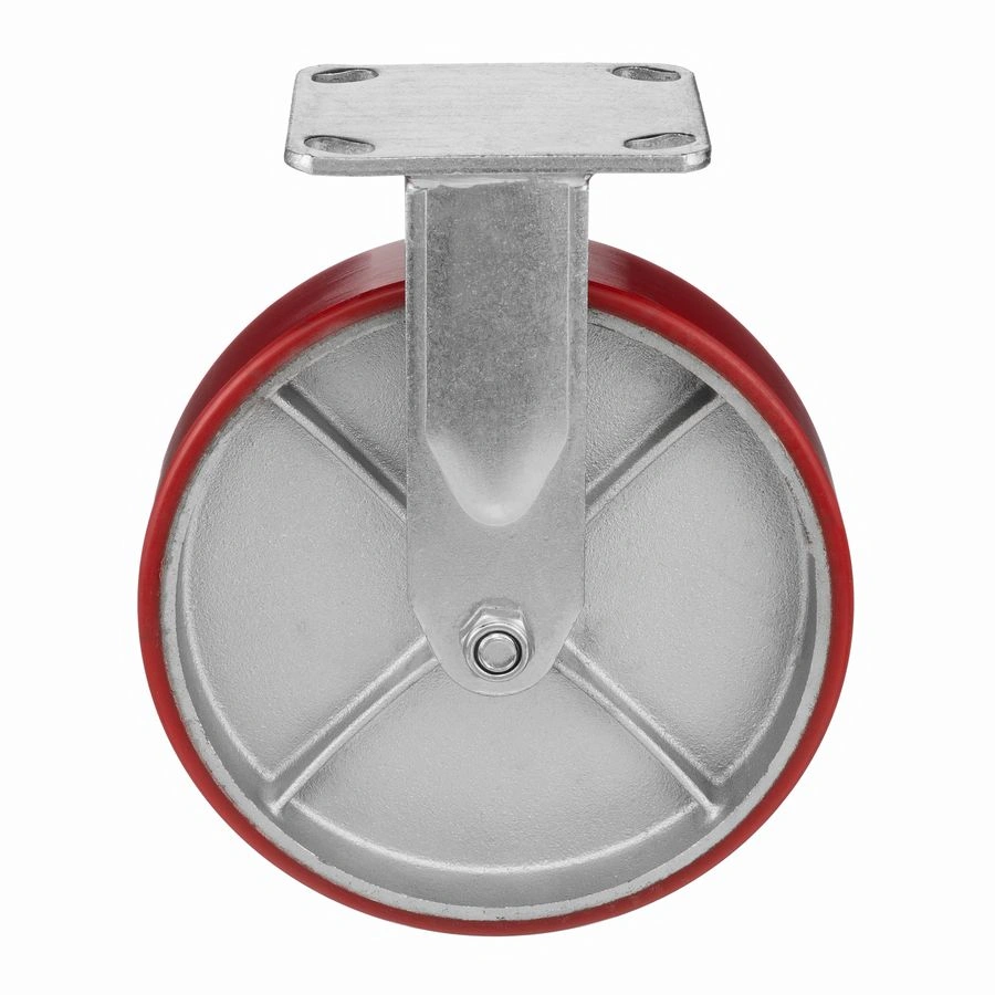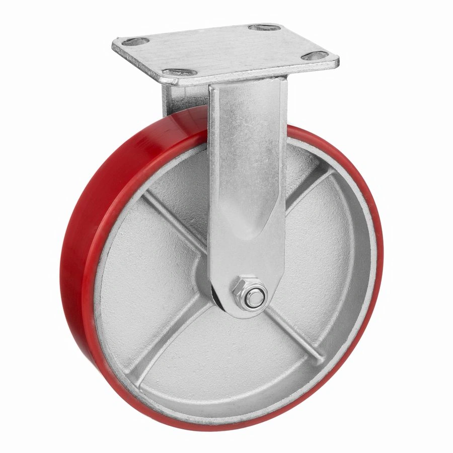 Колесо 1041-200, диаметр 200мм., чугун или полиуретан, неповоротное, игольчатый подшипник. Грузоподъемность 460кг. Колесо полиуретановое, центр из литого чугуна. В оси колеса-игольчатый подшипник. Стойкий к боковым ударам неповоротный кронштейн. Наличие масленки позволяет периодически обслуживать подшипник оси колеса. Крепление площадка под 4 болта. Колеса полиуретановые с чугунным сердечником широко применяются на бетонных полах преимущественно внутри помещений. Широко используются на тележках, строительных лесах и другом оборудовании, где требуется высокая грузоподъемность. При длительном нахождении под большой нагрузкой не деформируются. Возможно использование вне помещении на твердых покрытиях. Температура эксплуатации от -20 до +50С.