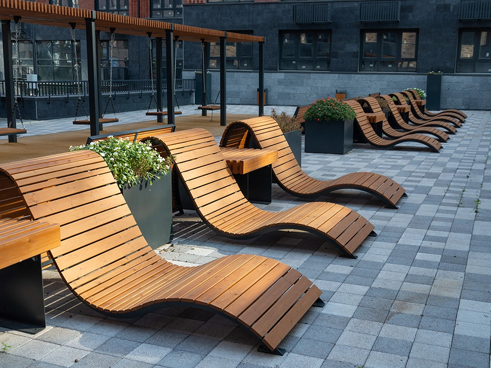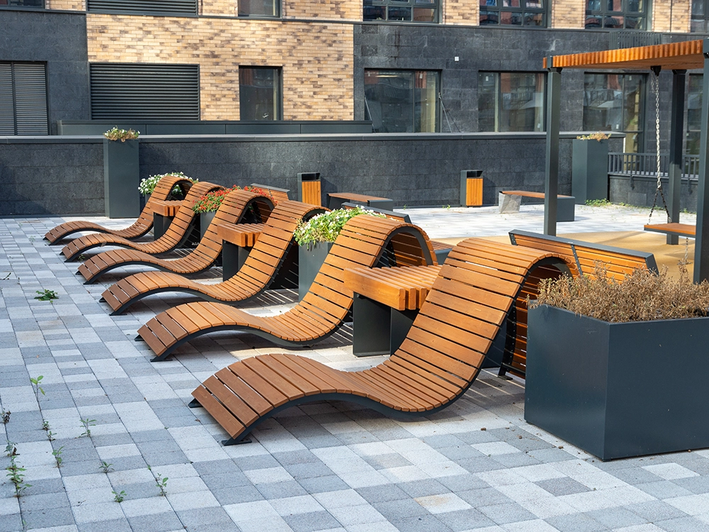 Очень удобный шезлонг великолепного дизайна. Идеальный внешний вид и высококачественное исполнение делают шезлонг «Бриз» незаменимым элементом набережных или парковых зон,