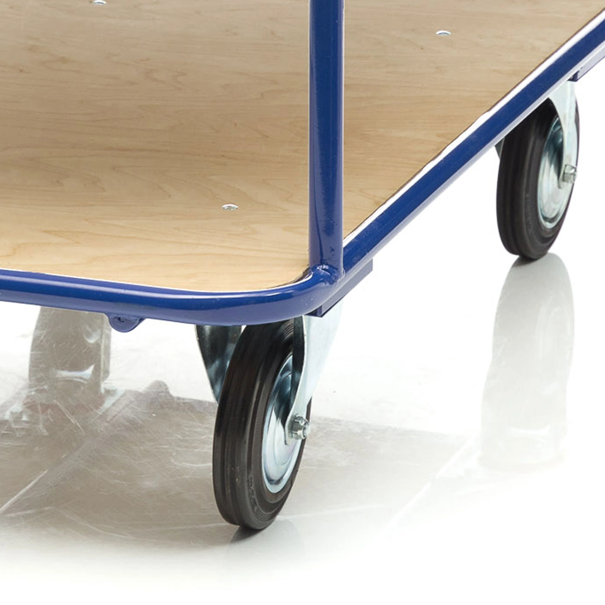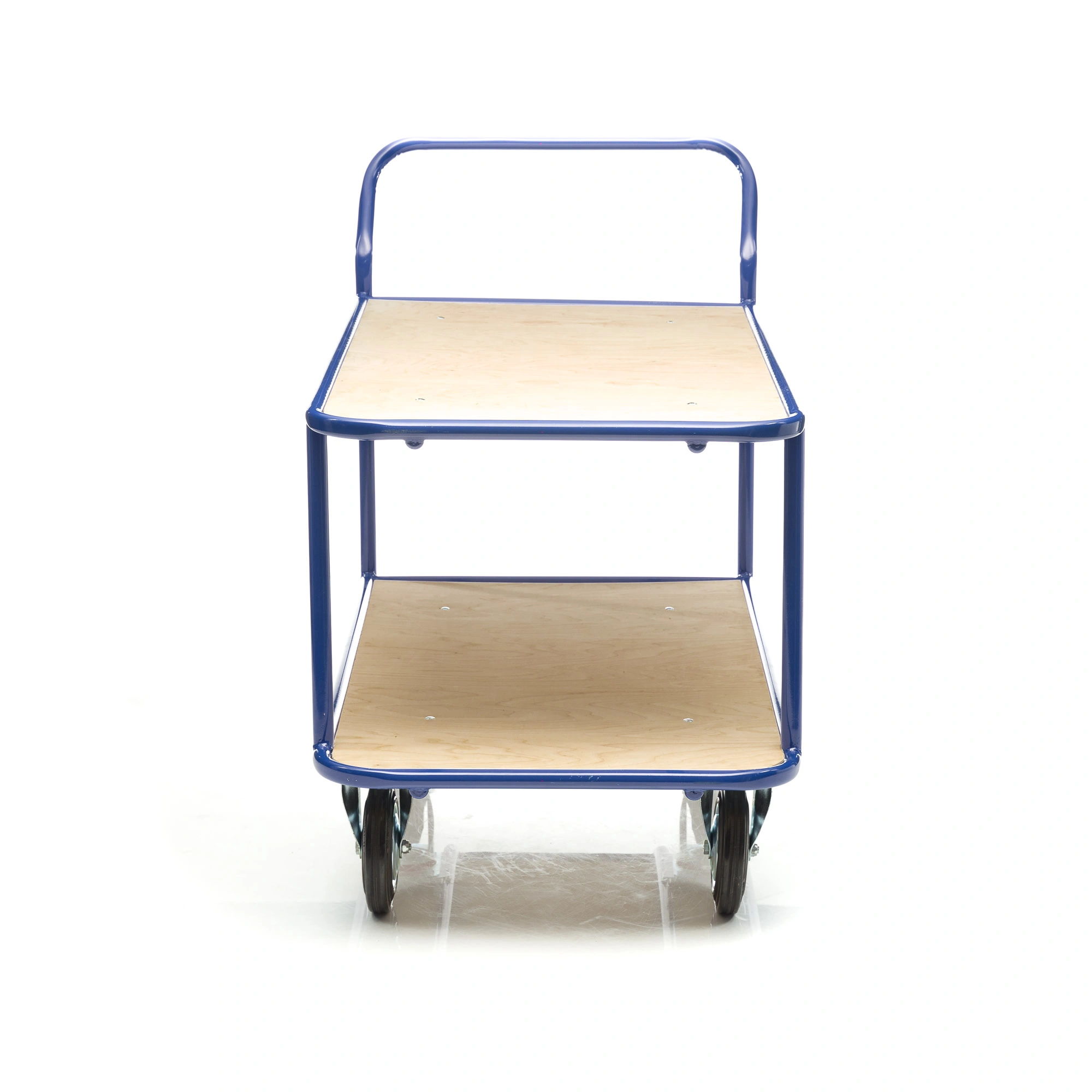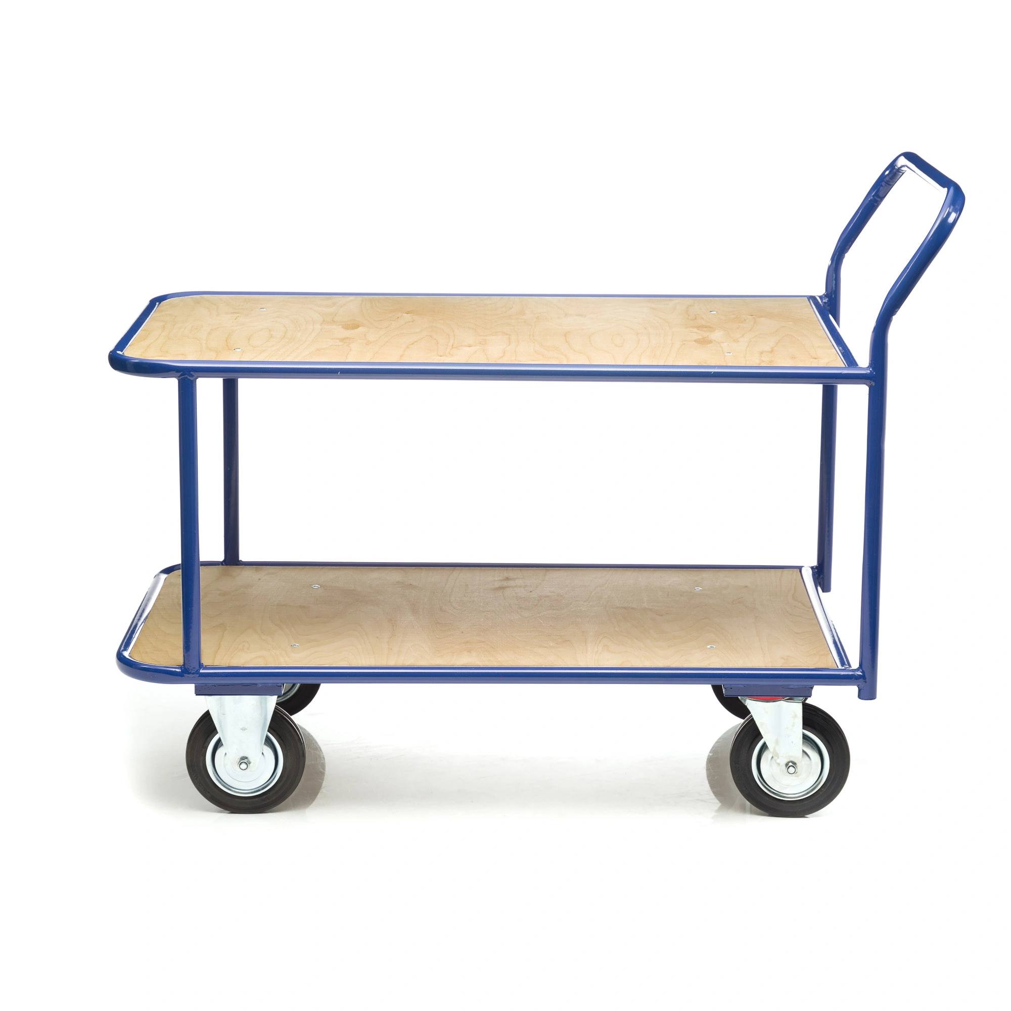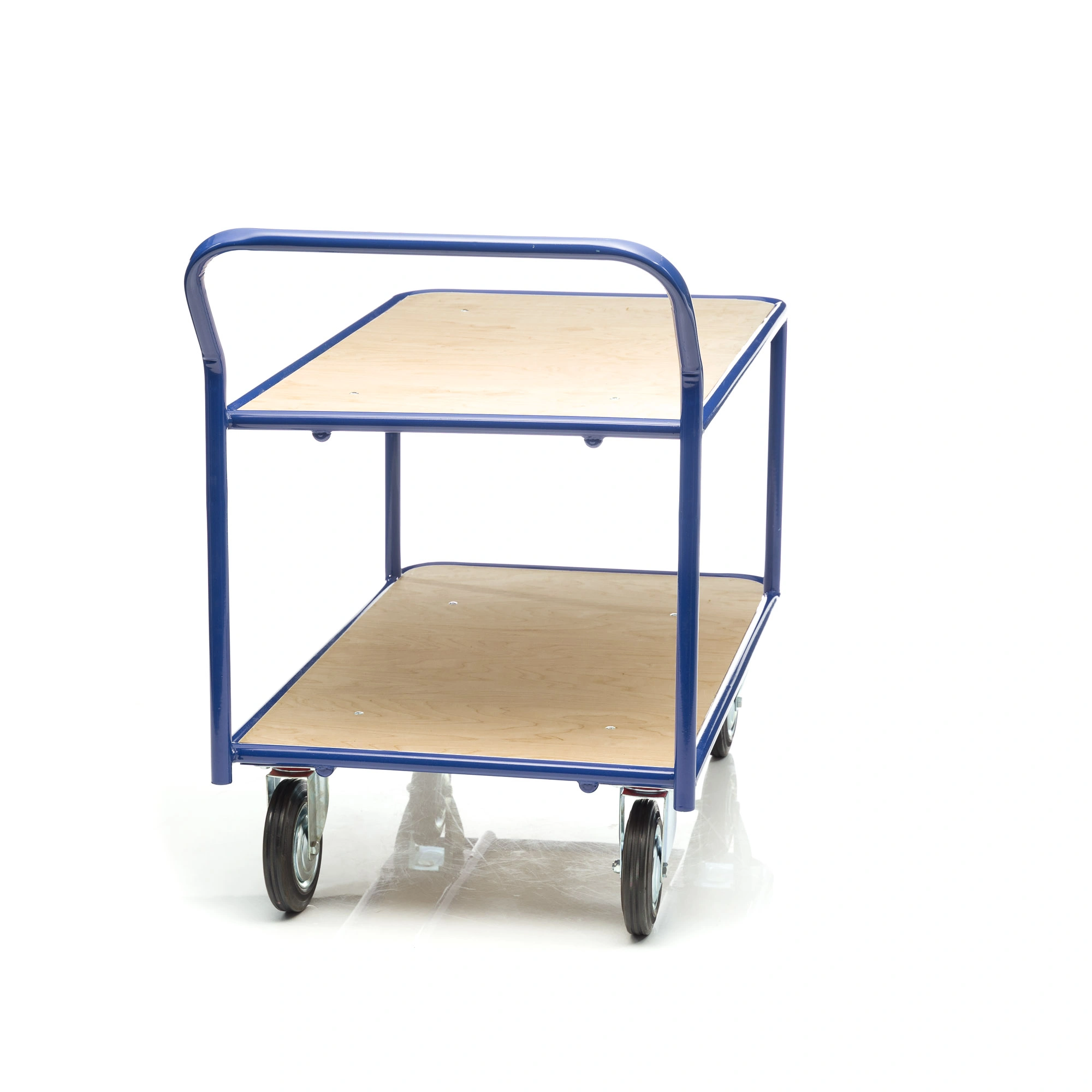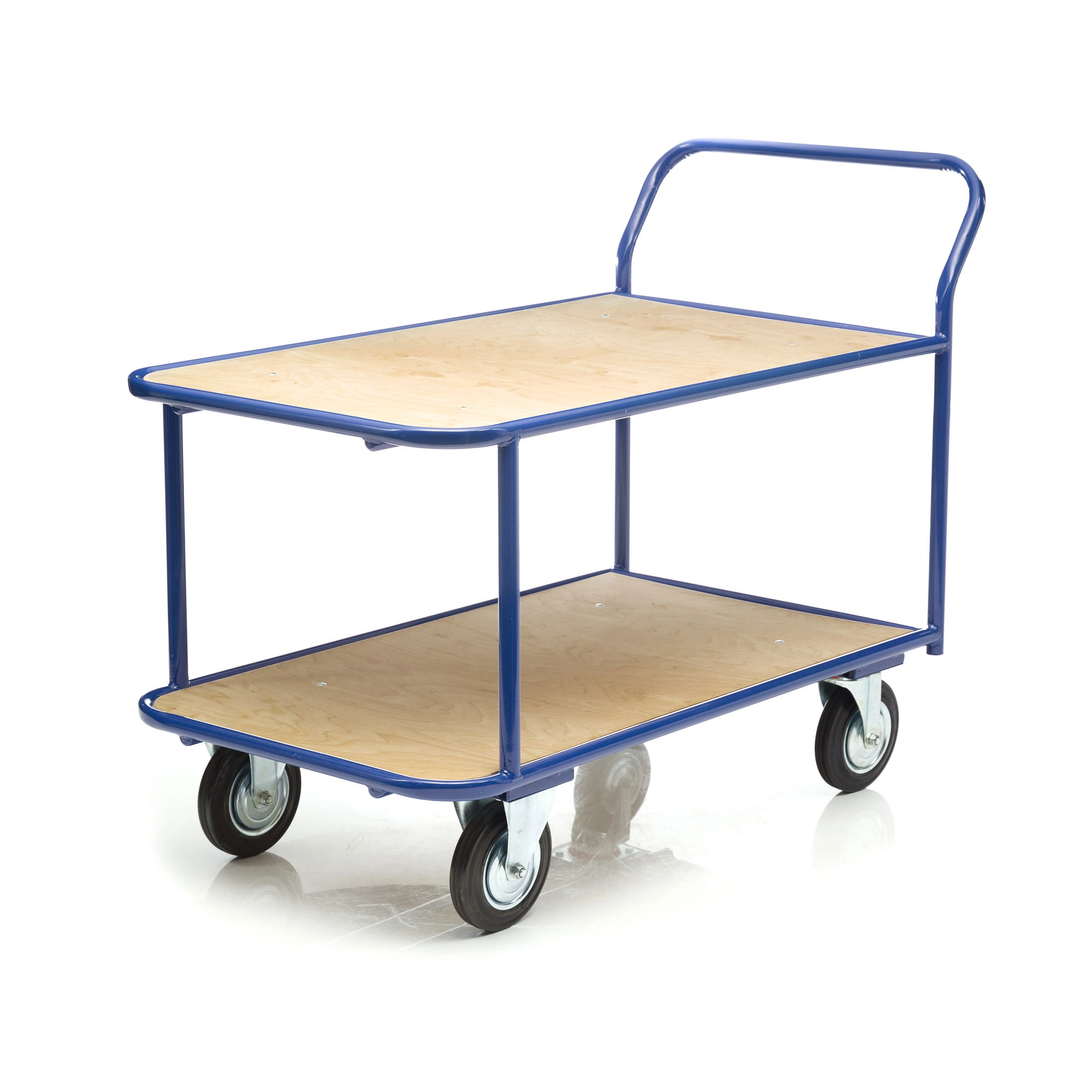 Платформенная двухъярусная 4-х колесная тележка КП-2-150-И используется для перевозки малогабаритных грузов. Платформы имеют металлический каркас накрытый фанерой толщиной 10мм., размер платформы 700х1200мм., расстояние между ярусами 480мм., количество ярусов 2 шт, габаритная высота 1050мм. Покрытие металлических деталей тележки полимерное, цвет - синий. Тележка широко используется на складах, в торговых павильонах, а также в гостиничном и ресторанном бизнесе. Две платформы позволяют удобно расположить перевозимые предметы.Тележка комплектуется: метизами для крепления, двумя поворотными и двумя неповоротными промышленными колесами, диаметром 150мм., из черной стандартной резины, от всемирно известного, ведущего итальянского производителя Tellure Rota. Грузоподъемность до 450кг.
