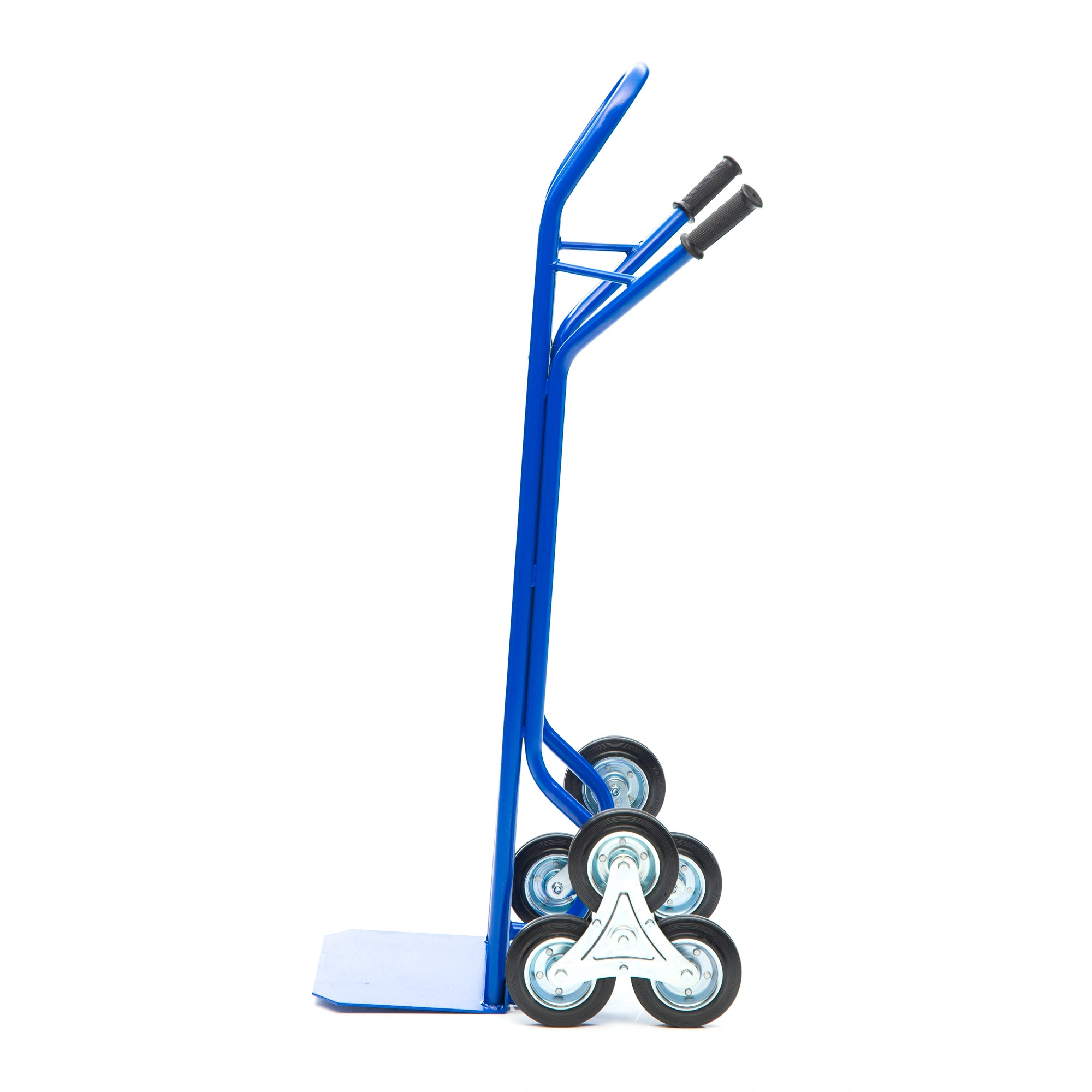 Грузовая специализированная лестничная тележка КС-150 имеет уникальную колесную базу, что позволяет перемещать по лестнице и на ровных плоскостях, груз весом до 150кг. Небольшие габариты и малый вес устройства облегчают его транспортировку. Окрашенный металлический корпус не восприимчив к коррозии и устойчив к нагрузкам. Вес тележки 18.8кг., высота ручки 1350мм., размер платформы 350х240мм., габариты 1350х550мм. Рукоятки имеют удобную для захвата форму и покрыты резиной, предотвращающей соскальзывание рук. Диаметр каждого из 6 колес-150мм. Большая опорная платформа служит для предотвращения падения груза с тележки.